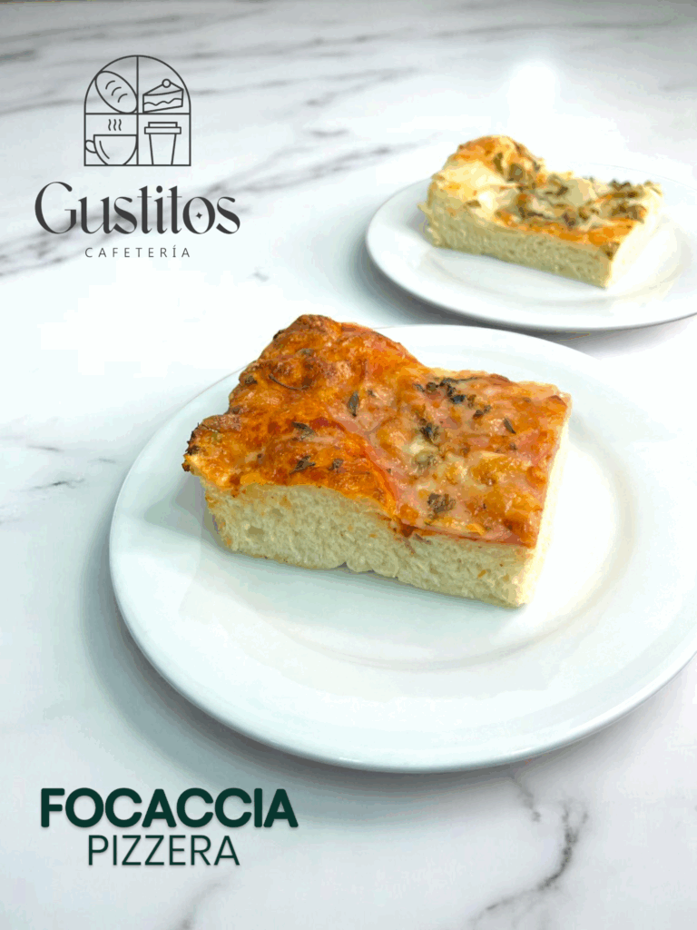 Hecho a base de masa madre empapada en aceite de oliva, queso, orégano, cebolla blanca y aceituna verde .